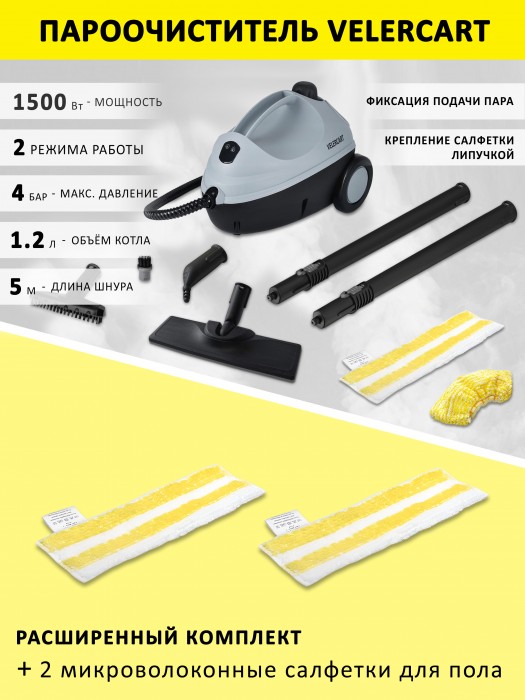 Пароочиститель для дома VELERCART V2, 4 бар + 2 салфетки для пола