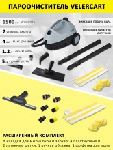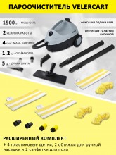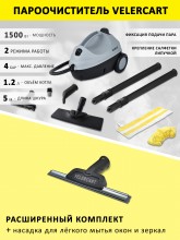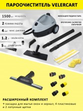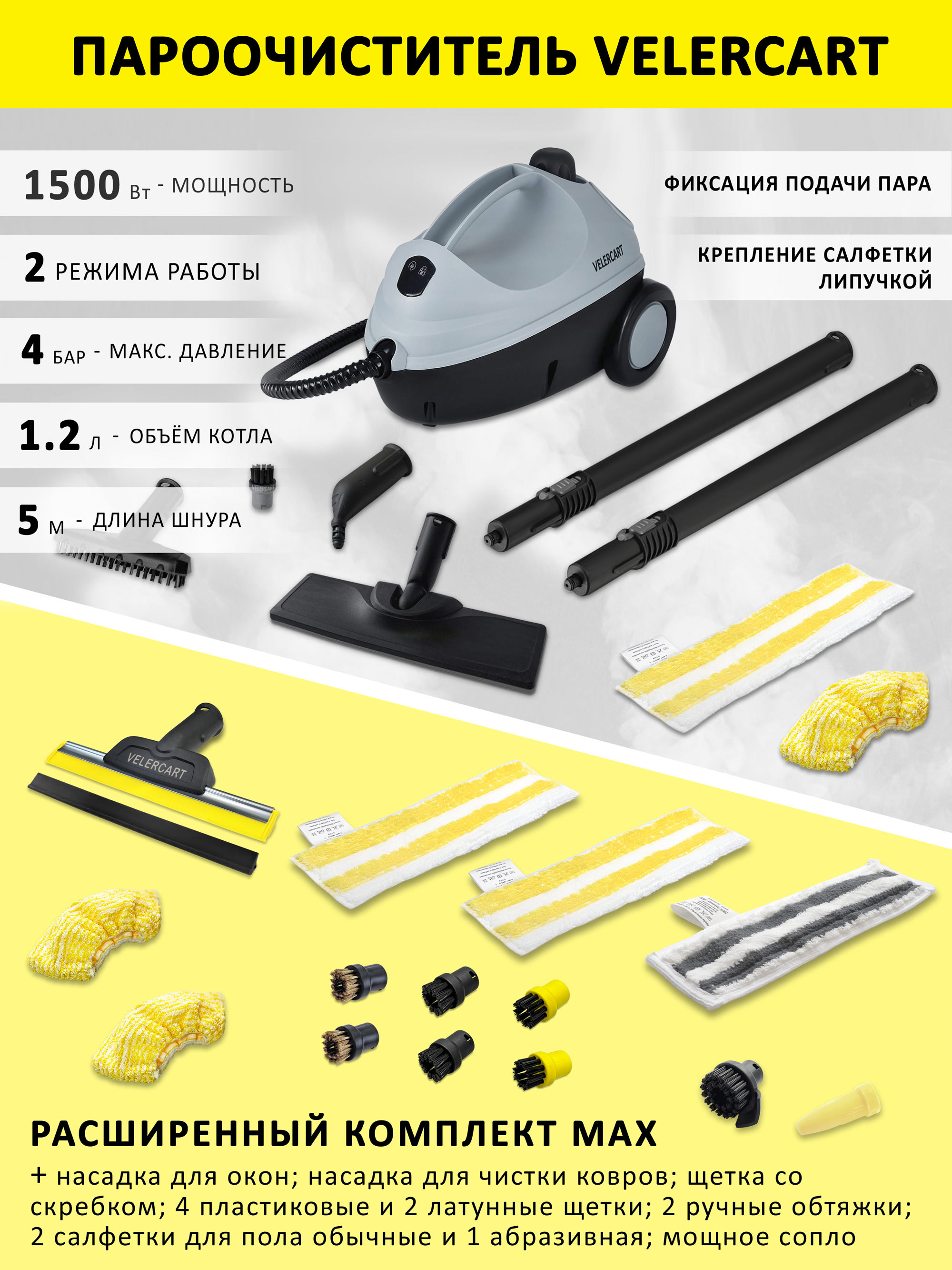Пароочиститель VELERCART V2 + насадки для окон и ковра, 2 салфетки обычные и 1 абразивная, 2 обтяжки, 4 пластиковые щётки и 2 латунные, 1 со скребком, мощное сопло